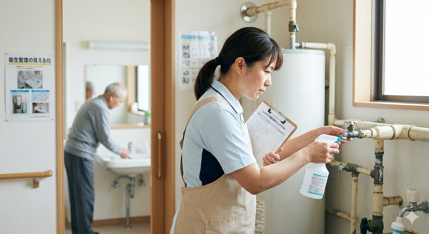 実際の現場では、「設備点検は委託しているから大丈夫」と考えられがちですが、レジオネラ対策はそれだけでは不十分です。使用頻度の低いシャワーや蛇口に滞留水が発生していないか、加湿器の管理が現場任せになっていないか、清掃や記録が担当者依存になっていないか、設備管理会社と現場スタッフの認識にズレがないかといった、日常運用の隙間にリスクが潜みます。特に入浴介助や口腔ケア、洗面動線が多い介護施設では、“毎日使っている設備”ほど注意が必要です。